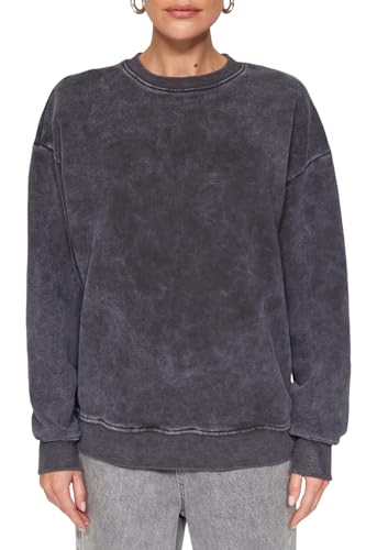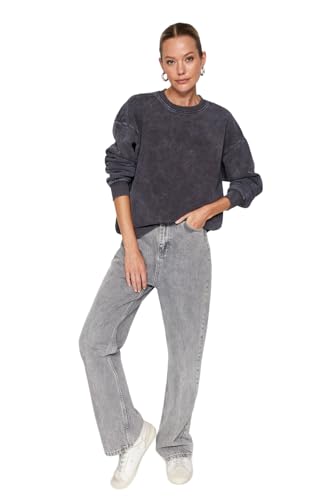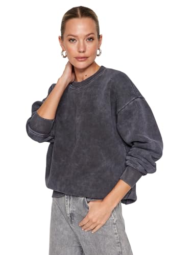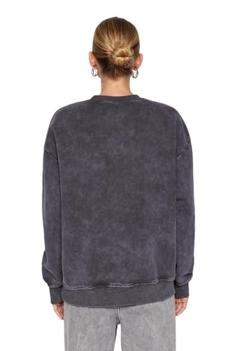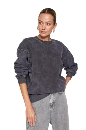 Trendyol - ترنديول سويت شيرت محبوك للنساء من الصوف السميك من الداخل بلون رصاصي عتيق/باهت ومقاس واسع، طراز TWOAW24SW00151 (عبوة من قطعة واحدة)