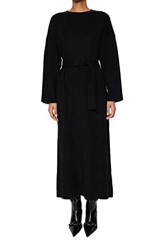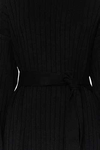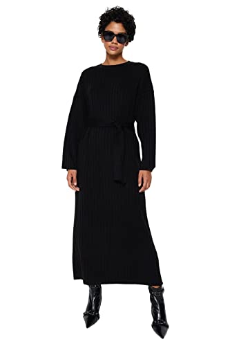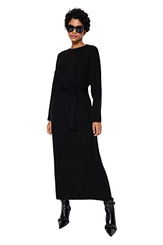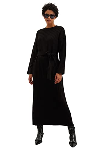 Trendyol - Trendyol womens Black Belted Ribbed Knitwear Dress TCTAW24EB00008 Modest Dresses (pack of 1)