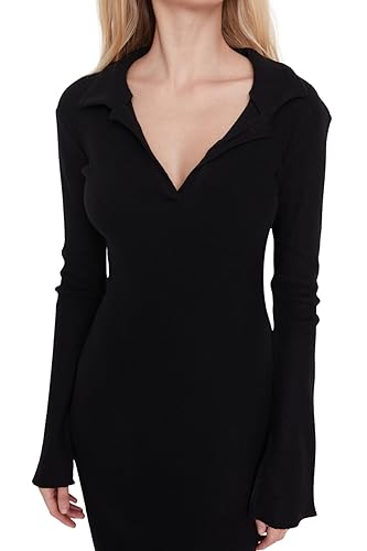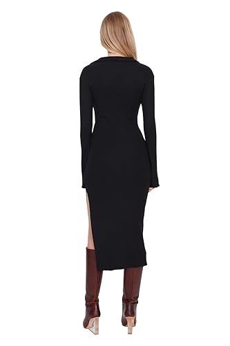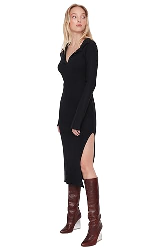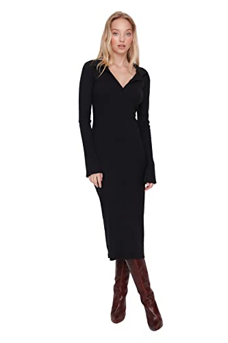 Trendyol - Trendyol womens Black Fake Knitwear Body-Fitting Polo Collar Maxi Ribbed Flexible Knitted Pencil Dress TWOAW23EL00164 Dress (pack of 1)