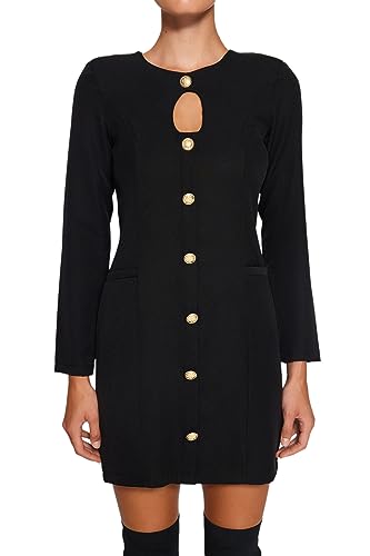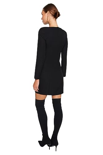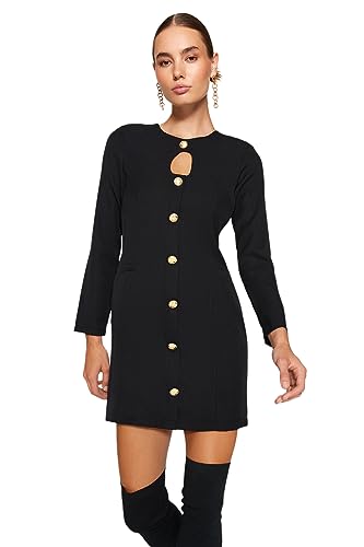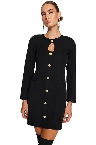 Trendyol - Trendyol womens Black Straight Cut Button Detail Crew Neck Mini Woven Dress TWOAW24EL00410 Dress (pack of 1)
