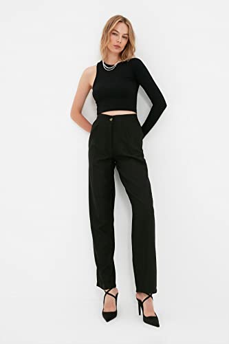 Trendyol - Trendyol Womens Black Straight/Straight Cut Woven Fabric Pants Twoaw22Pl0321 Pants (pack of 1)