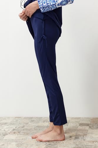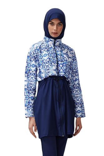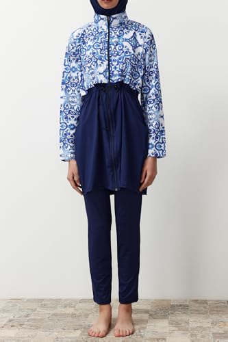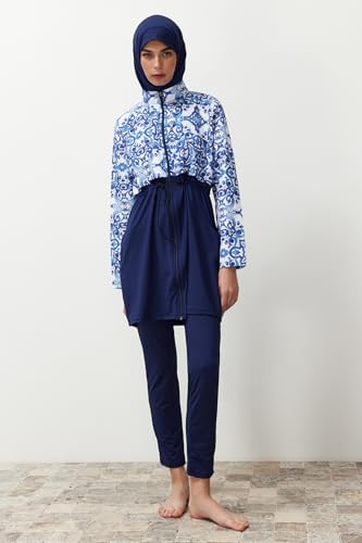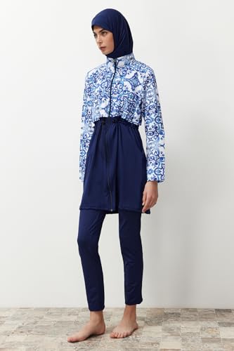 Trendyol - ترنديول طقم ملابس سباحة للنساء من 4 قطع بتصميم منقوش ومغطى بالكامل بلون ازرق TCTSS23CF00036