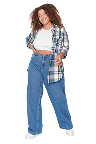 Trendyol - Trendyol Womens Blue High Waist Wide Cut Jeans TBBAW23CJ00020 Plus Size Jeans (pack of 1)