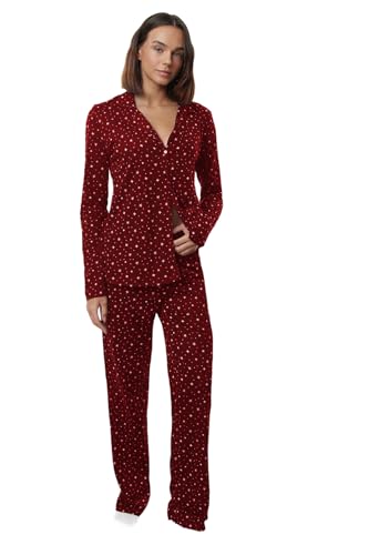 Trendyol - Trendyol Womens Burgundy 100% Cotton Galaxy Print Knitted Pajamas Set Thmaw25Pt00097 Pajama Set (pack of 1)