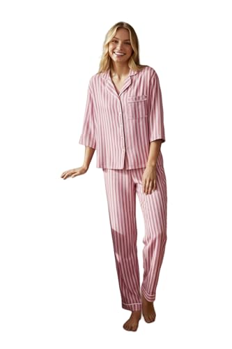 Trendyol - Trendyol Womens Colorful Striped Pink Viscose Pajama Set - Piping, Thmaw21pt0292 Pajama Set (pack of 1)