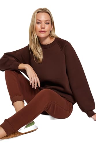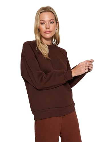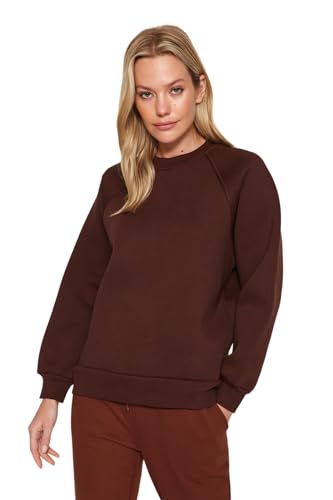 Trendyol - Trendyol Womens Dark Brown Relaxed/Comfortable Fit Basic Raglan Sleeve Crew Neck Knitted Sweatshirt TWOAW24SW00104 Sweatshirt (pack of 1)