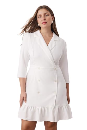 Trendyol - Trendyol womens Ecru Plus Size Unlined Three Quarter Sleeve Mini Woven Jacket Kleid Tbbaw23ah00042 Plus Size Dress (pack of 1)