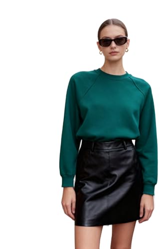 Trendyol - Trendyol Womens Emerald Green Relaxed/Comfortable Fit Basic Raglan Sleeve Crew Neck Knitted Sweatshirt TWOAW24SW00104 Sweatshirt