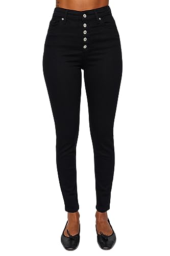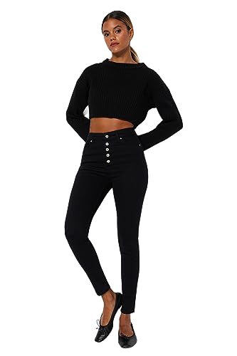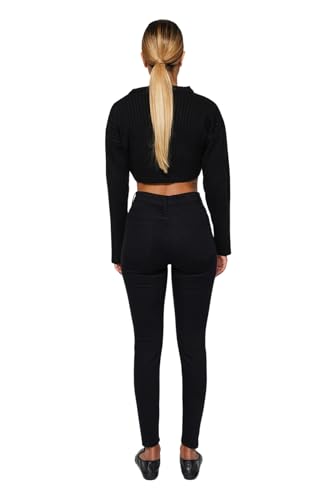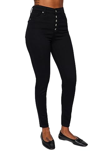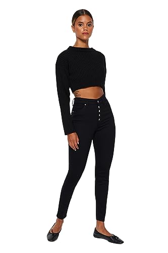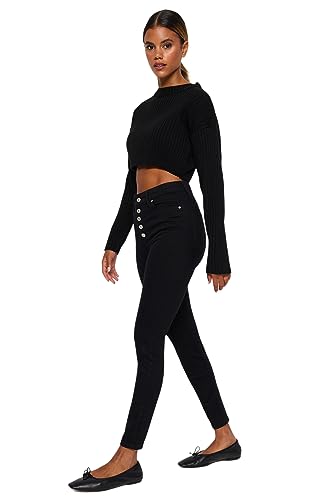 Trendyol - Trendyol Womens Fade-Resistant Black Body-Hugging Stretch Front Button High Waist Skinny Jeans Twoaw24Je00090 Jeans (pack of 1)