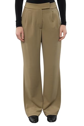 Trendyol - Trendyol Womens High Waist and Velcro Closure Wide Leg Trousers - Dark Khaki Twoaw24pl00177 Pants (pack of 1)