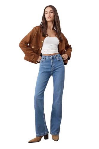 Trendyol - Trendyol Womens Light Blue High Waist Spanish Leg Flare Jeans Twoaw26Je00047 Jeans