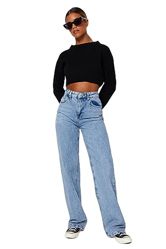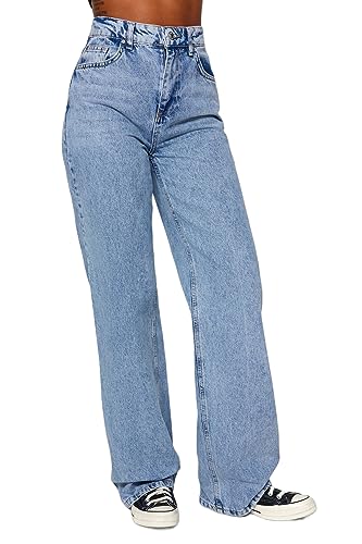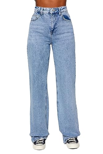 Trendyol - Trendyol Womens Light Blue High Waist Wide Leg Wide Leg Jeans Twoaw24Je00074 Jeans (pack of 1)