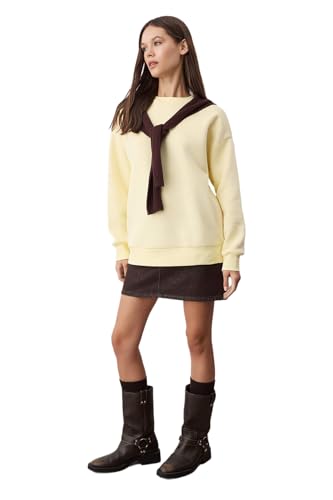 Trendyol - Trendyol Womens Light Yellow Oversize/Relaxed Fit Basic Crew Neck Thick/Inner Fleece Knitted Sweatshirt Twoaw24Sw00102 Sweatshirt (pack of 1)
