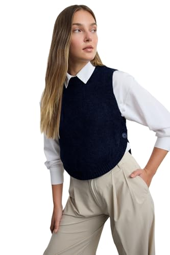 Trendyol - فيست بلوفر Twoaw25Sv00013 صوف قصير ناعم منسوج بأزرار للنساء من ترنديول، بلون كحلي (عبوة من قطعة واحدة)