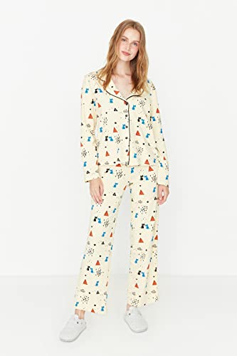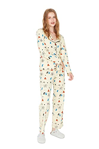 Trendyol - Trendyol Womens Patterned 100% Cotton Multicolor Pajamas Set - Thmaw21Pt0084 Pajama Set (pack of 1)