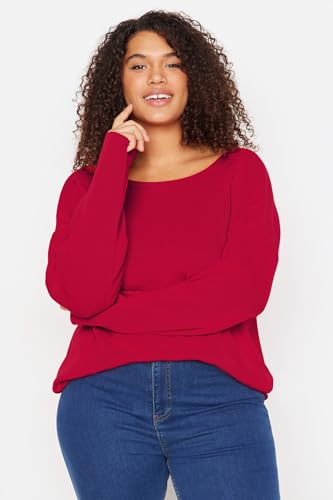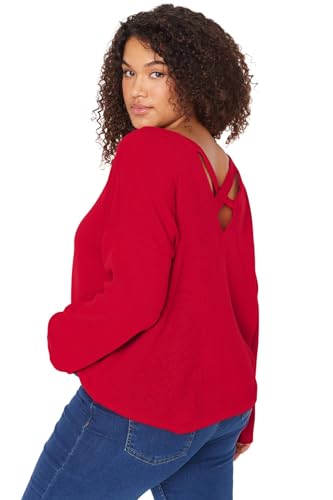 Trendyol - ترنديول سويتر محبوك بتفاصيل حزام الصليب الاحمر للنساء TBBAW23AN00021 مقاس كبير (عبوة من قطعة واحدة)