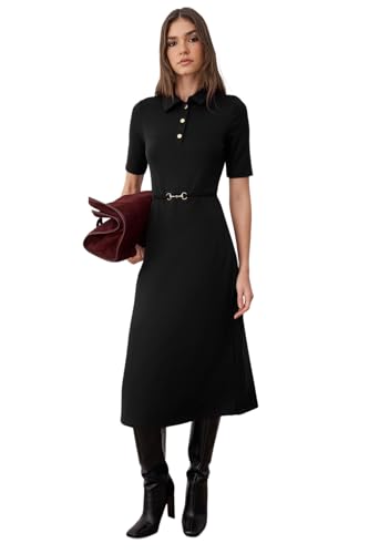 Trendyol - Trendyol womens Schwarz Belted Three Quarter Sleeve A Line/Flared Gerade Midi Knitted Kleid Twoaw26el00023 Dress (pack of 1)