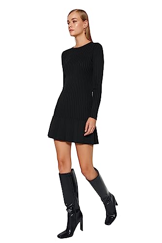 Trendyol - Trendyol womens Schwarz Mini Pleated Strickwaren Kleid Twoaw24el00013 Dress (pack of 1)