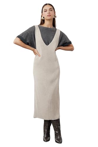 Trendyol - Trendyol womens Stone Maxi V-Neck Gilet Knitwear Dress Twoaw24El00011 Dress (pack of 1)