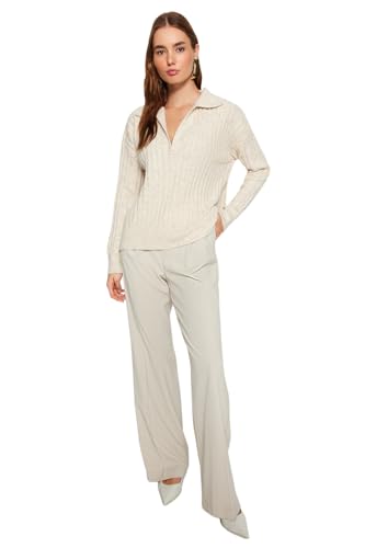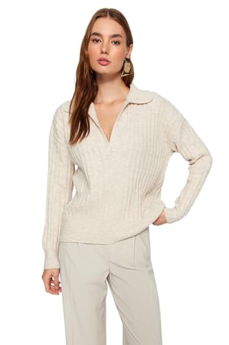 Trendyol - ترنديول سويتر صوف ناعم منسوج بقبة بولو للنساء TWOAW24KZ00678 (عبوة من قطعة واحدة)