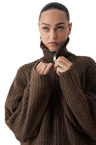 Trendyol - Trendyol Womens Wardrobe Essentials Brown Zippered Soft Textured Wide Fit Knitwear Cardigan | Twoaw26Hi000490 Cardigan (pack of 1)
