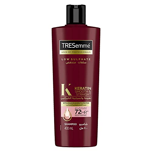 - TRESemmé Keratin Smooth & Straight Shampoo helps to control frizzy hair whilst giving it shine