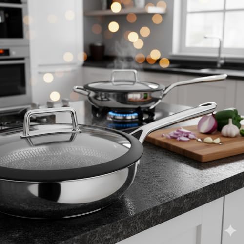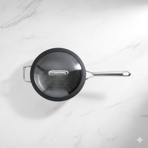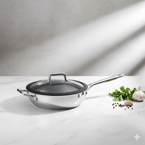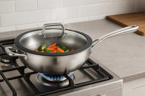 Generic - Tri-Ply Stainless Steel Wok Pan with Lid – Non-Stick Coating, Even Heat Distribution, Honeycomb Surface, Suitable for All Stoves – 18 Months Warranty (26cm)