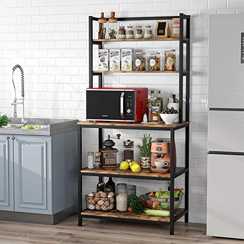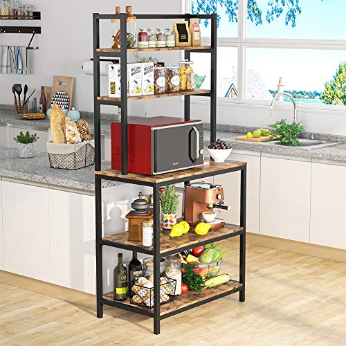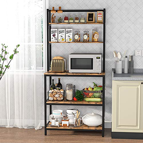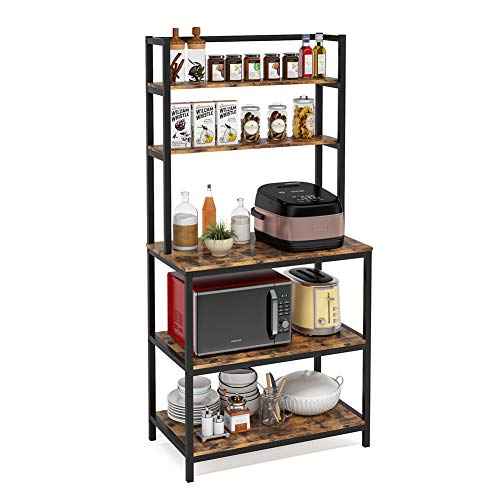 Tribesigns - رف للمطبخ مناسب للميكروويف والفرن والتوابل وأدوات تناول الطعام بتصميم صناعي قائم بذاته من 5 طبقات (سميك ومقوى) ترايب ساينز (بني عتيق)، معدن