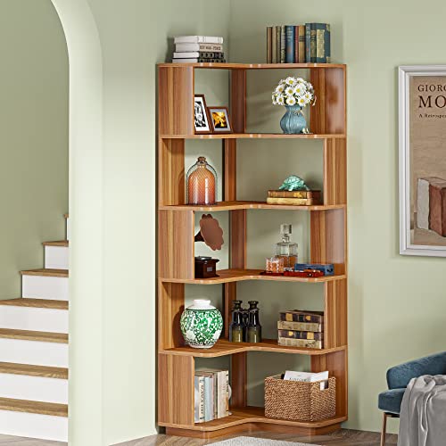 Tribesigns - رف كتب زاوية مكون من 6 طبقات، مكتبة على شكل حرف L بأسلوب صناعي مع لوحة مضادة للسقوط، رف عرض مستقل بنقشة الخشب لتنظيم وتخزين الكتب في المنزل أو المكتب من تريبسايز بارتفاع 165 سم