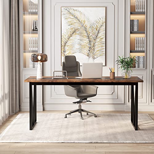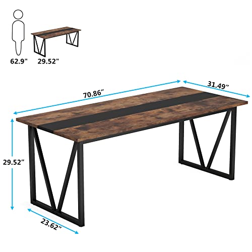 Tribesigns - Tribesigns 6FT Conference Table, 70.8W x 31.5D inch Meeting Seminar Table for Office Conference Room, Modern Rectangular Training Table Boardroom Desk with Metal Frame (Rusitc Brown)