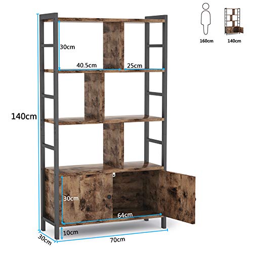 Tribesigns - Tribesigns Bookshelf, Storage Cabinet with 3 Shelves and 2 Doors, Industrial Bookcase Bookshelf with Cabinet, 70x30x140cm