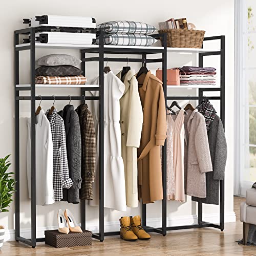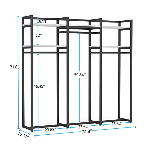 Tribesigns - Tribesigns Freestanding Closet Organizer, 75 inch Clothing Rack with Shelves, Heavy Duty Garment Rack Wardrobe Closet with Hanging Rods