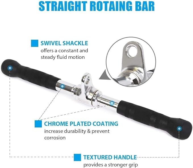 - قضيب دوار مستقيم - يتميز القضيب المستقيم بهيكل من الستيل الصلب وشماعة دوارة ومقبض مطلي بالمطاط المنسوج لجعله يعمل بشكل جيد. مثالية لأداء السحب لأسفل والضغط على ثلاثية الرؤوس والصفوف المستقيمة وتجعيد القضيب المستقيم والصفوف الجالسة وغير ذلك الكثير.