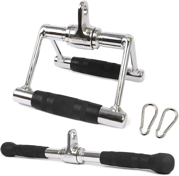 - قضيب على شكل حرف V ومقبض على شكل حرف V مع دوران - مصنوع من الستيل الصلب عالي الجودة مع لمسة نهائية من الكروم المصقول. فتحة 0.6 انش يمكن أن تناسب بسهولة جميع أنظمة الكابلات. مقبض مطلي بالمطاط المحكم، يوفر قبضة مريحة وآمنة أثناء التمرين، ويوفر قوة متوازنة لكلا الذراعين عند ربطه بأي جهاز صالة ألعاب رياضية.