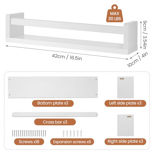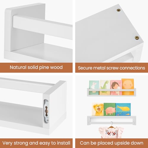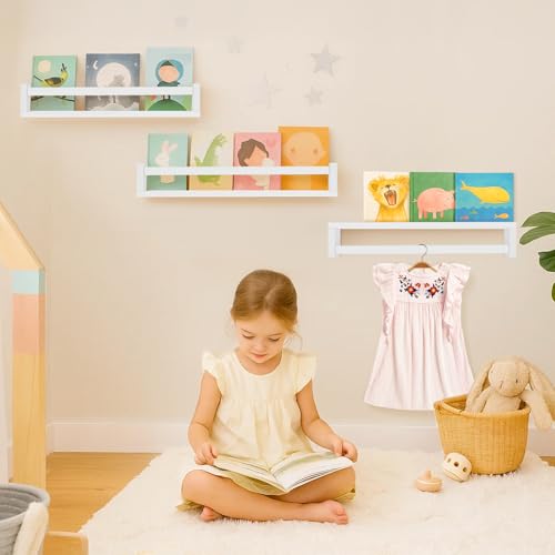 Trintion - خزانة كتب جدارية للاطفال من ترينشن، مجموعة من 3 ارفف عائمة من الخشب الصلب لغرفة الاطفال، ارفف عائمة من خشب الصنوبر الصلب (42 سم)، رف ديكور انيق لغرفة الاطفال والمطبخ (ابيض)
