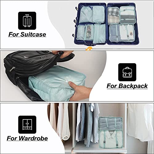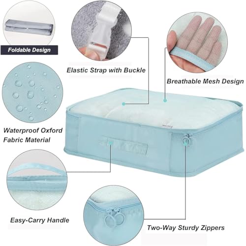 TRIP ON GO - 7 IN 1 Set Travel Organizer Pouch, Packing Cubes For Travel With Makeup Pouch Bag, Wardrobe Organizer For Storage, Cloth Organizer For Storage With Shoe Bag (Sky Blue, 7 IN1 CHINA)