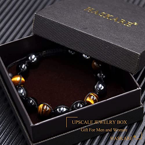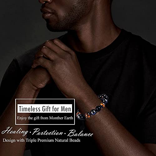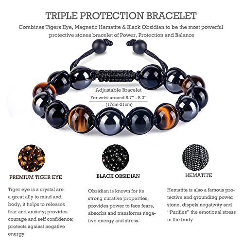fashion mania - Triple Protection Bracelet for Women Men, 10mm Crystal Beads Bracelet Handmade with Tiger Eye Black Obsidian and Magnetic Hematite, Natural Healing Crystals Bracelet for Protection and Balance
