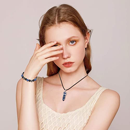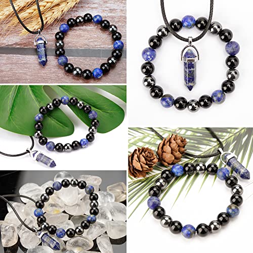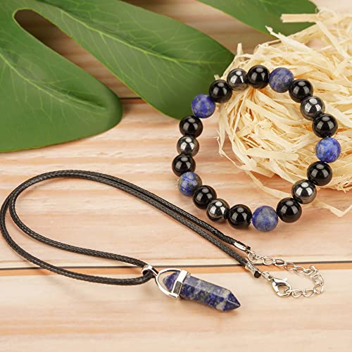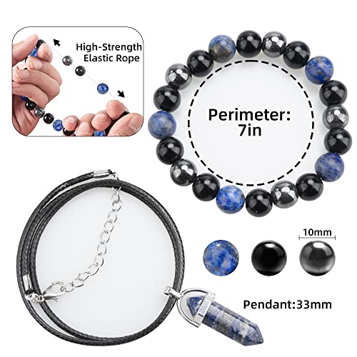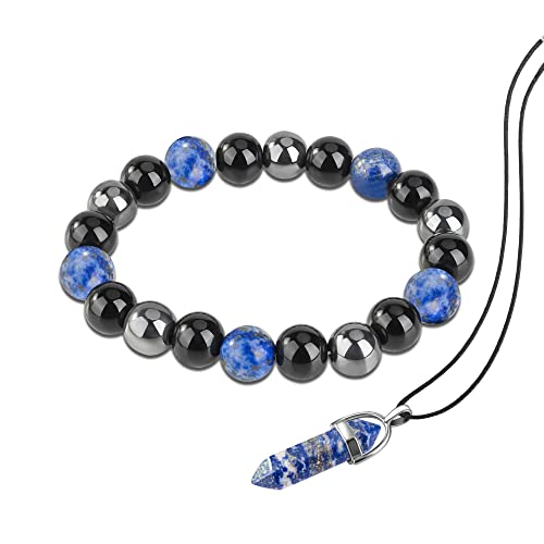 generic - سوار حماية ثلاثي من كريستال العقيق الطبيعي، مجموعة اساور وعقد عين النمر واللازورد والجمشت، سوار قابل للتمدد، مجوهرات كوارتز طاقة شاكرا للرجال والنساء (لازورد 10 متر)