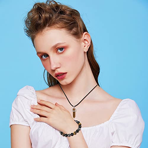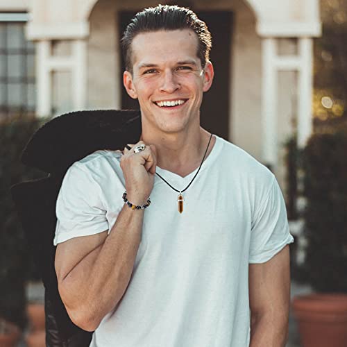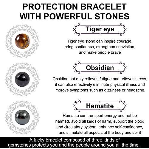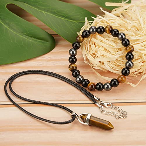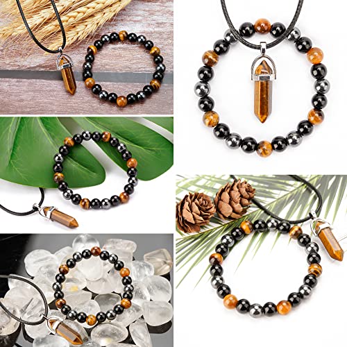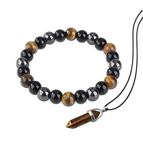 generic - Triple Protection Bracelet Natural Carnelian Crystal Necklace Bracelet Set Tiger Eye Lapis Lazuli Amethyst Beaded Stretch Bracelet Chakra Energy Quartz Jewelry for Men Women(Tiger Eye 8m)