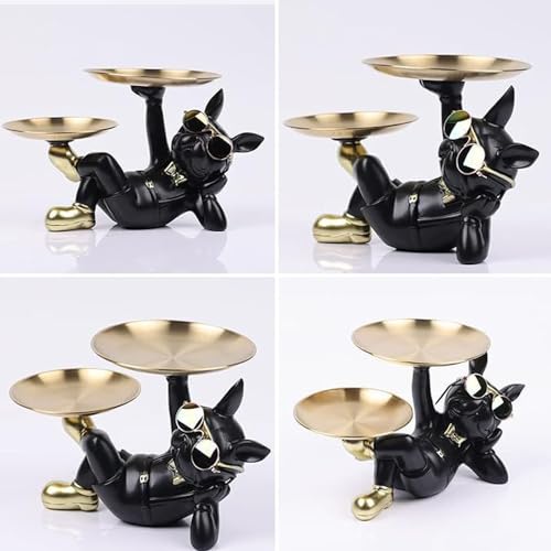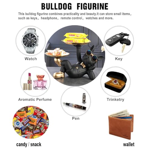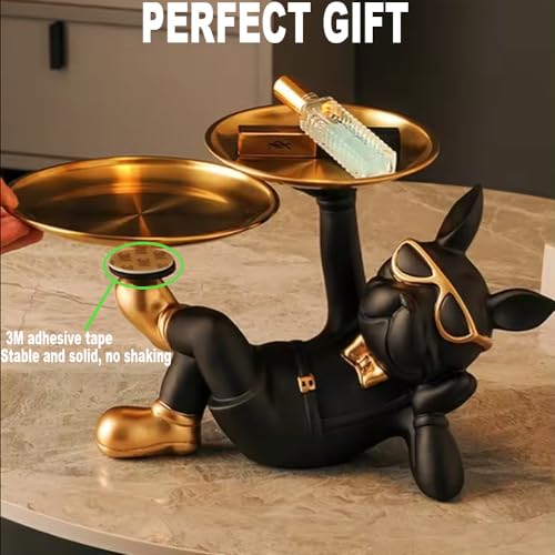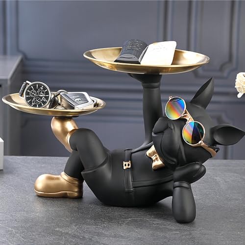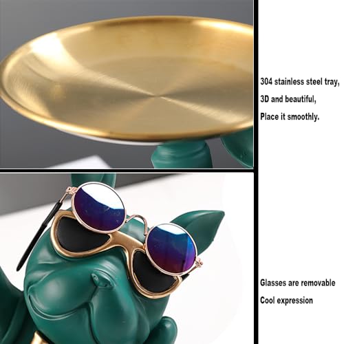 TRIrunpdl - French Bulldog Statue Decor with 2 Tray and Cute Glasses, Key Holder Bowl for Entryway Table, Candy Jewelry Earrings Dish for Home Decor Modern Art, Cool French Bulldog Sculpture Gifts