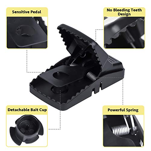 - 【سهلة التركيب والتنظيف】تم تصميم مصائد الفئران هذه بكوب طعم قابل للفصل ومصنوعة من مادة ABS والستيل الممتازة. ما عليك سوى سحب كوب الطعم واملأه بالطعم، ثم اضغط على القضيب حتى النهاية. انتهى، تم تجهيز المصيدة بالكامل. يمكنك تنظيفها ببساطة بالماء عندما تتسخ.