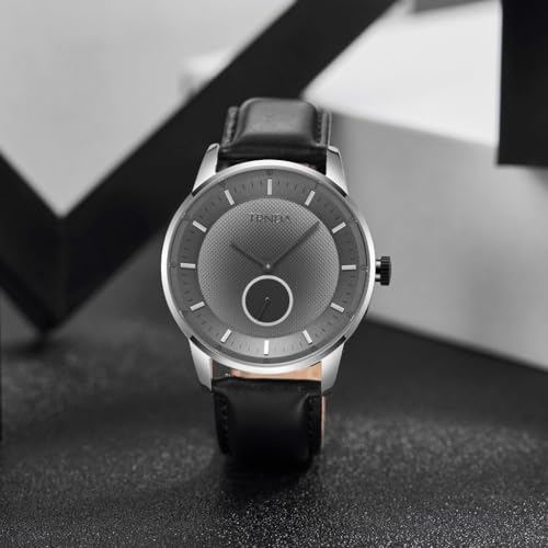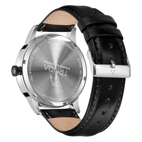 TRNDA - MEN'S STAINLESS STEEL TIMEPIECE - GRADIENT LIGHT GRAY DIAL & BLACK LEATHER BAND