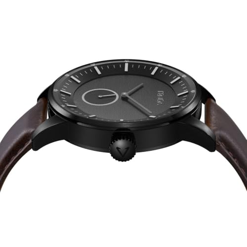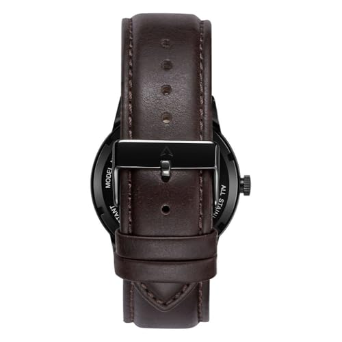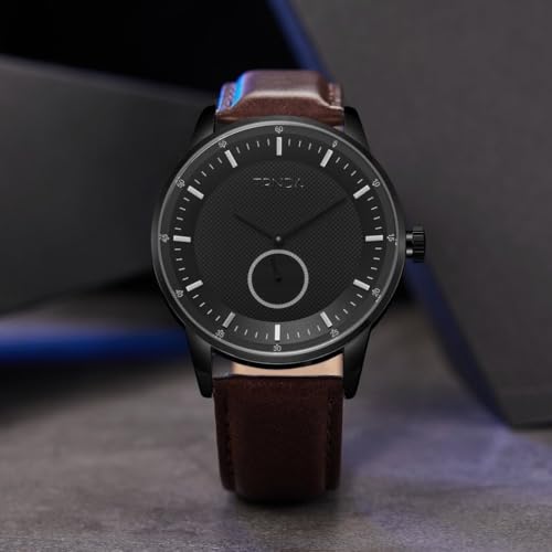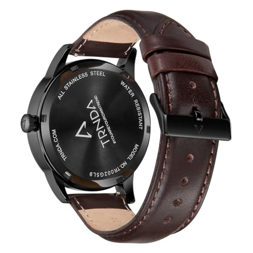TRNDA - ساعة عصرية من الستانلس ستيل للرجال من ترندا - مينا اسود انيق وسوار جلدي بني