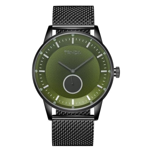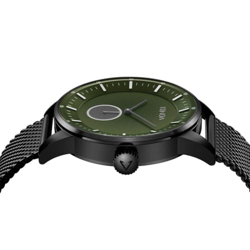TRNDA - MENS STAINLESS STEEL WATCH - TIMELESS SEAWEED GREEN DIAL WITH BROWN MESH BAND