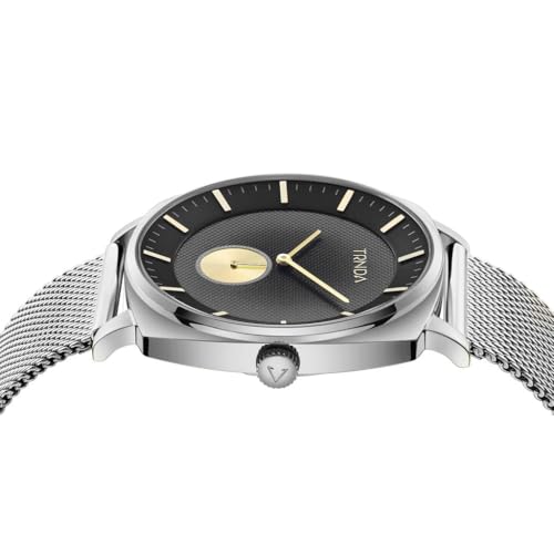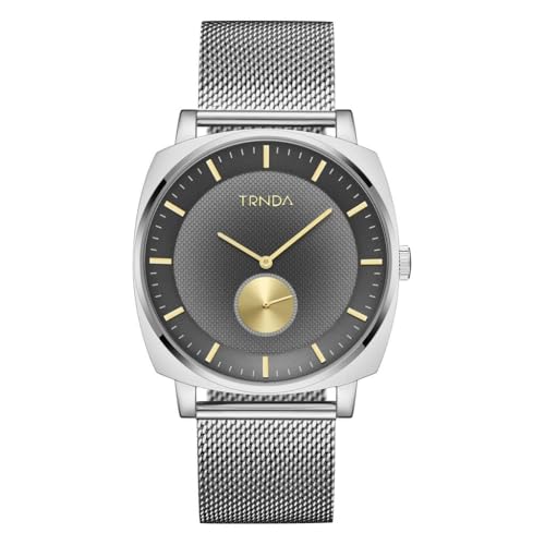 TRNDA - SQUARE MASTER - TRENDY STAINLESS STEEL MEN'S WATCH with Silver Mesh Band & Gradient Grey Dial