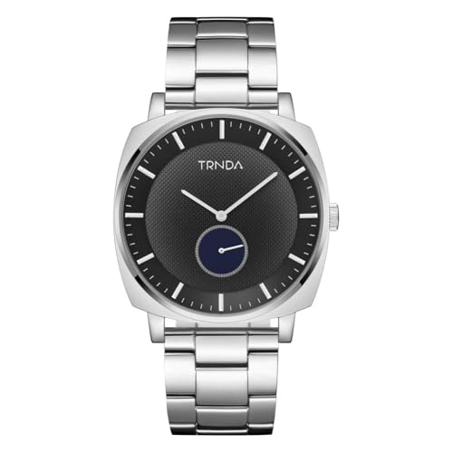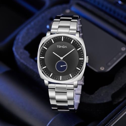 TRNDA - ساعة مربعة فضية من الستانلس ستيل للرجال من ترندا - ساعة عصرية لا تتأثر بمرور الزمن مع مينا متدرجة