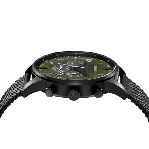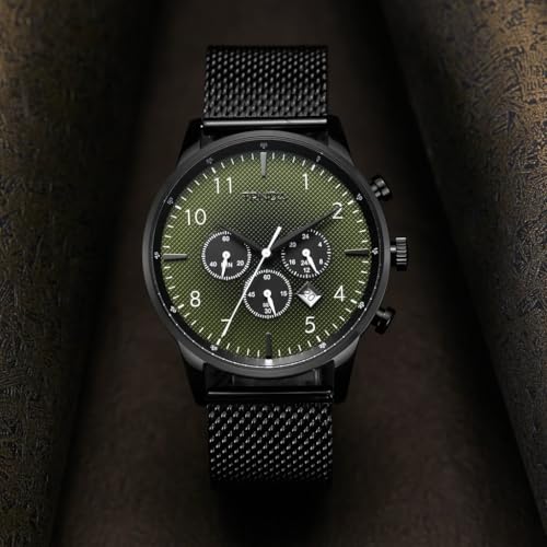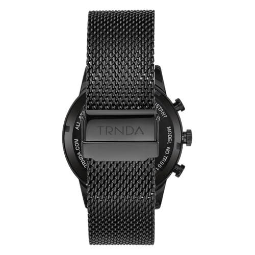 TRNDA - ساعة ستانلس ستيل للرجال من ترندا - مينا اسود واخضر بحري لا يتأثر بمرور الزمن