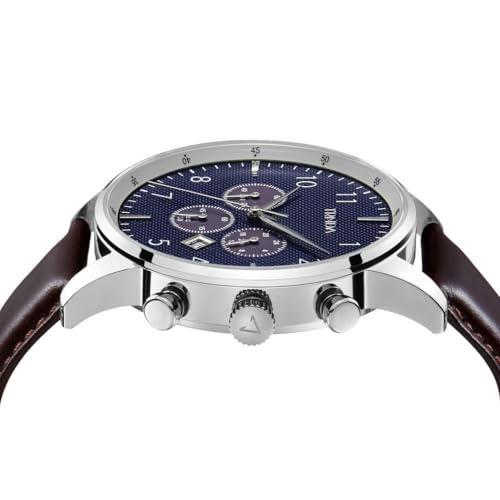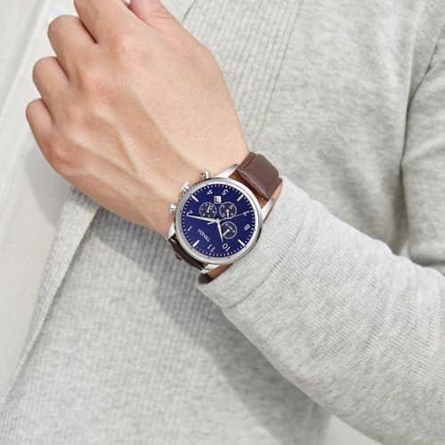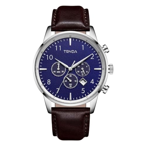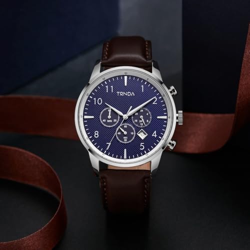 TRNDA - STAINLESS STEEL ROUND WATCH - TIMELESS BLUE DIAL & BROWN LEATHER BAND Men's Fashion Statement