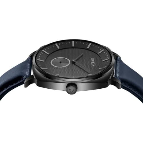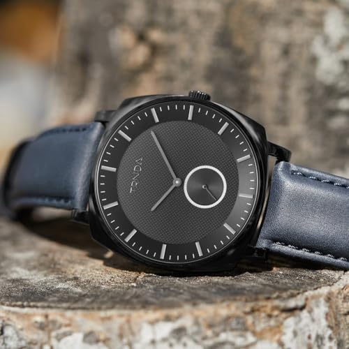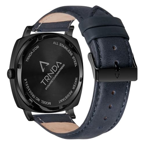 TRNDA - STAINLESS STEEL SQUARE BLACK DIAL MEN'S WATCH - BLUE LEATHER BAND - TIMELESS TRENDSETTER