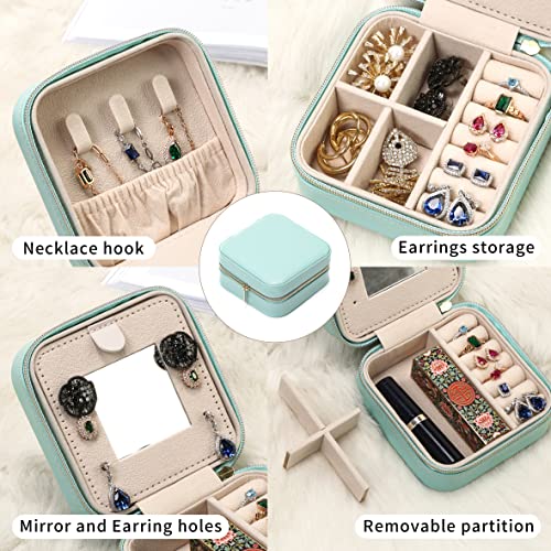 TRODANCE - TRODANCE Jewelry Travel Case with Mirror,Small Travel Jewelry Organizer, Portable Jewelry Box Travel Mini Organizer Portable Display Storage Box For Rings Earrings Necklaces (Green)